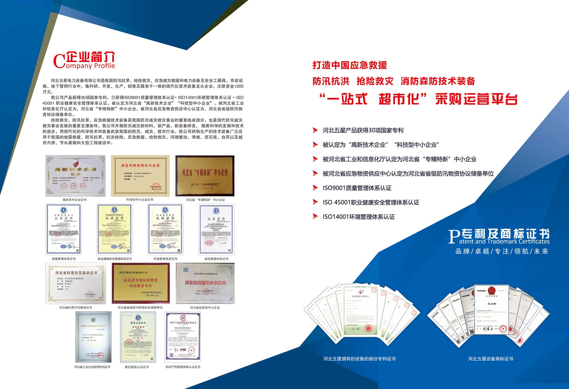 河北五星電力設(shè)備有限公司是我國(guó)防汛抗旱、搶險(xiǎn)救災(zāi)、應(yīng)急減災(zāi)救援和電力設(shè)備及安全工器具、市政設(shè)施、地下管網(wǎng)行業(yè)中,集科研、開(kāi)發(fā)、生產(chǎn)、銷(xiāo)售及服務(wù)于一體的現(xiàn)代化技術(shù)裝備高新技術(shù)企業(yè),注冊(cè)資金1200萬(wàn)元。